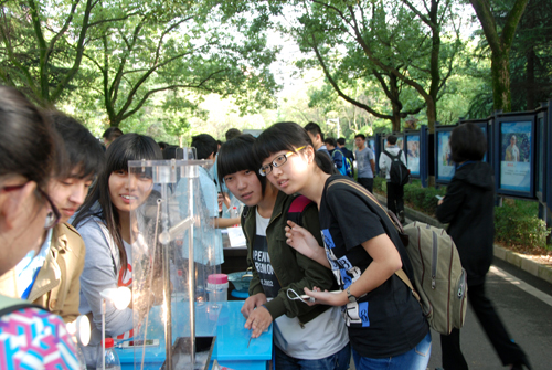 开幕式结束后,与会师生参加了现场数理趣味知识竞赛的互动活动,参观了数学文化系列展览,体验了物理实验开放项目。活动现场吸引了众多师生驻足观看。数理趣味知识竞赛让同学们“脑洞大开”;数学文化展板让同学们透过生活中的知识了解不一样的数学;院士长廊处,“电磁炮”“共振娃娃”“伽尔顿板”“蛇形摆”“蒸汽机”等一个个有趣的物理实验经过相关工作人员的讲解,让老员工、中小员工们深刻体会到了数理科学的魅力所在。开幕式当天,3000余人次参加了数理文化活动季的相关活动。