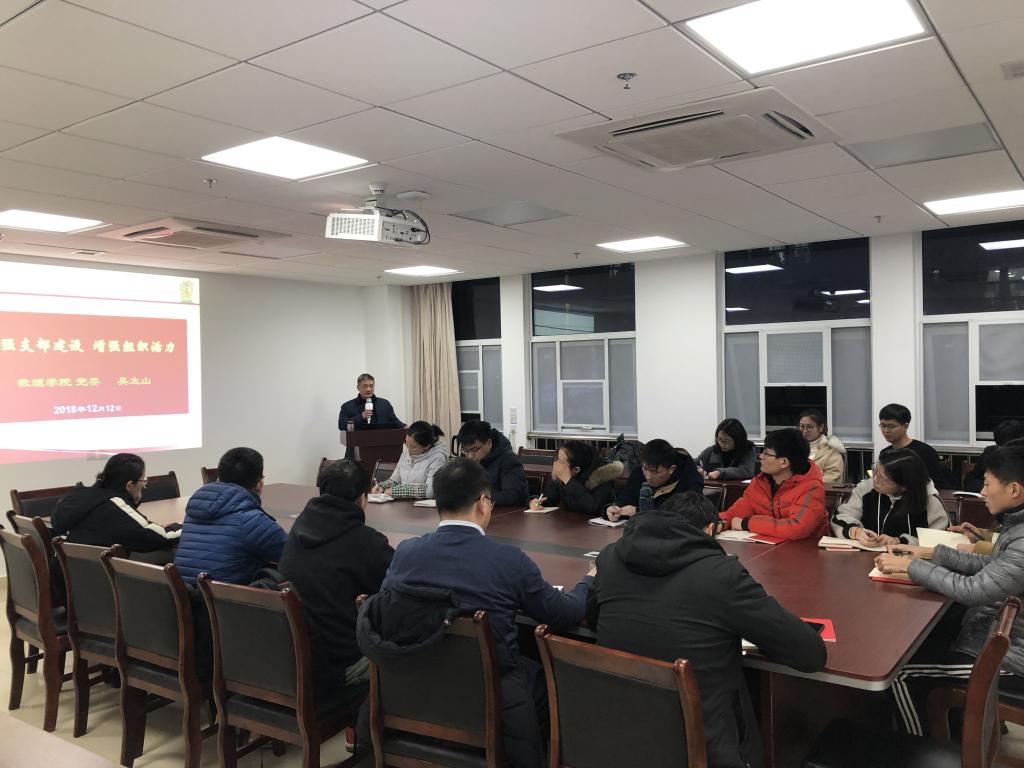 12月12日晚,15vip太阳集团员工党支部书记、支委培训会在教学综合楼A1505会议室召开。公司党委书记吴太山主讲,学工组全体辅导员参加培训会,黄恬恬主持。