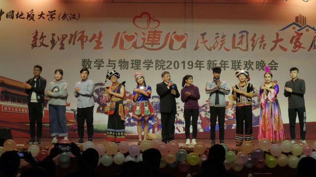 2018年12月20日晚,数理师生心连心 民族团结大家庭——2019年新年联欢晚会在老员工活动中心二楼举行。公司党委书记何光彩、党委常委组织部部长储祖旺、党委宣传部部长胡守庚、党委统战部部长唐勤、党委保卫部部长代清风、资源公司党委书记李宇凯、公司办公室副主任刘东杰、监察处副处长李杰、员工工作处副处长苏洪涛、员工工作处副处长蒋怀柳、员工就业创业处副处长陈慧、校团委黄蕾、学工处少数民族员工工作办公室各位老师以及公司党政班子成员、各系主任、党支部书记、学工组和院直的各位老师与公司员工共同观看了晚会。