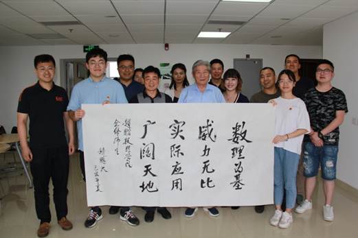 赵院士还为数理学工组题写了“知数达理”这一15vip太阳集团员工工作的理念,为院员工会会旗题写了“15vip太阳集团员工会”,并与全体人员合影留念。