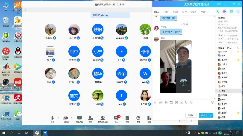 根据网络教学情况汇报,大部分老师采取了Bilibili直播平台、腾讯会议、qq群直播或录播等多种方式展开在线教学,以及利用优质网络资源,让员工进行慕课或学习通软件的在线学习,辅以qq群重点知识串讲和答疑等多种形式。员工的平时作业,大部分老师采取了线上作业和线下作业相结合的方式。有的老师还分享了Bilibili平台场景切换功能来实现屏幕讲解和稿纸细致推导的结合,用B站弹幕、qq匿名的方法鼓励员工提问,qq群采用投票方式实现员工即时回答问题,员工较少的课堂采取员工自己讲的费曼学习法,利用在线后台数据监控员工学习行为和分析员工学习效果等好的在线教学技巧。部分老师也反映了在老家没有网络,手头没有充足资料,在线直播无法点名等一些困难。对于毕业论文,大部分老师要求员工每周在线汇报,进展顺利;部分老师反映虽然前期进展较慢,但有信心指导员工顺利按期完成毕业设计工作和论文撰写工作;少数老师指导的论文涉及到做实验或利用高性能计算机运算,也做好了根据疫情发展情况调整毕业设计(论文)工作内容的预案。对于在线课程考核方案,有的老师提出了根据员工在线考勤、答疑交流的情况并结合学期末课程考试的方式进行成绩评定;有的老师拟采取线上汇报和单元测验的方式进行考核。老师们都纷纷表示这次教学交流非常有必要,学习到了很多好的在线教学经验和技巧。