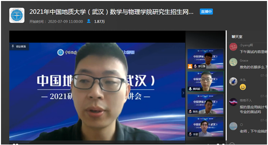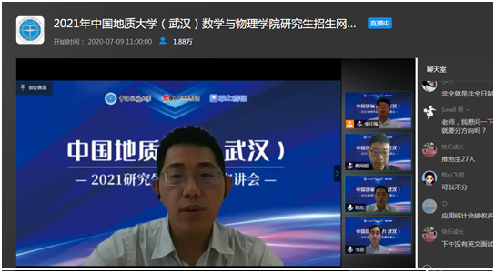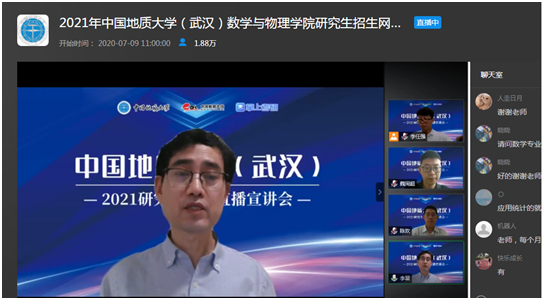 7月9日上午,15vip太阳集团副经理魏周超、物理系主任陈欢、信息与计算科学系主任李星通过中国教学在线网络直播平台,向同学们介绍了15vip太阳集团数学、物理、应用统计三个研究生招生学科的基本情况,并回答了同学们提出的各种问题。据统计,直播结束时,有大约1.8万余人参与了本次直播活动。
