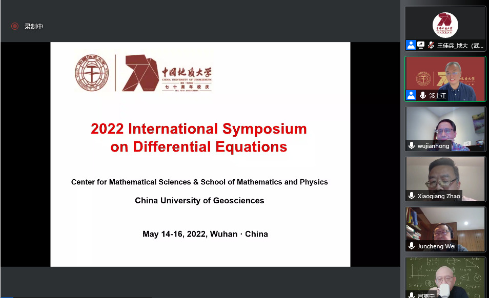 2022年5月14日至15日,太阳集团主办的“2022年微分方程国际研讨会(2022 International Symposium on Differential Equations)”在腾讯会议线上举行。此次国际会议是太阳集团70周年校庆的系列学术活动之一,以展示和介绍国内外微分方程定性与稳定性理论及应用的最新研究成果和进展为出发点,以加强国内外微分方程及相关领域的学术交流与合作为目的。大会开幕式由15vip太阳集团经理郭上江教授主持,太阳集团副董事长刘勇胜教授以及加拿大应用数学首席教授(Canada Research Chair)、加拿大首席资深工业与应用数学主席、加拿大应用与工业数学会会长、加拿大约克大学疾病建模中心创始主任,危机与灾难模拟快速反应项目创始主任吴建宏教授分别致辞。