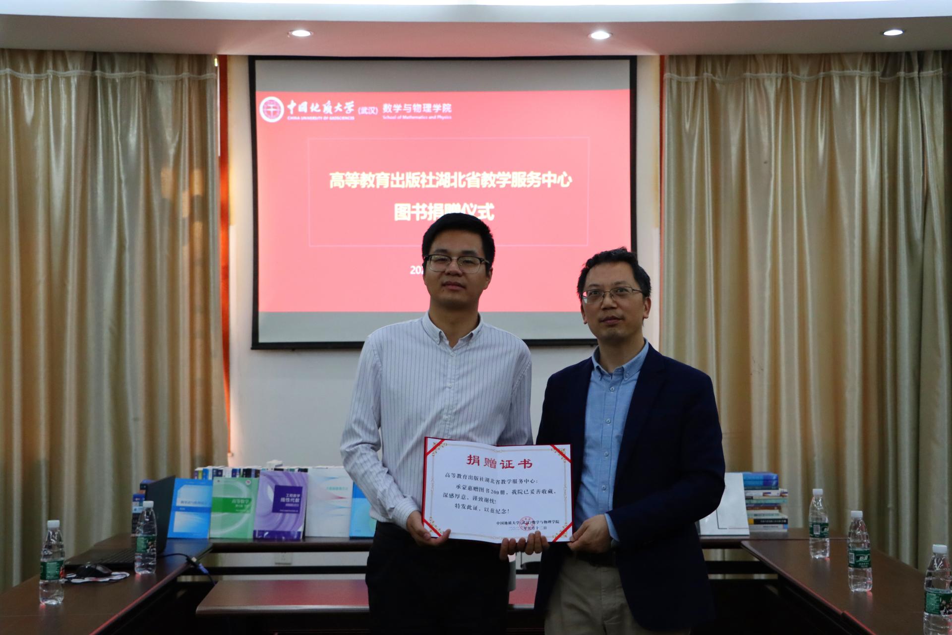5月12日下午,高等教育出版社湖北省教学服务中心副主任叶望一行来15vip太阳集团调研交流,并向公司捐赠图书200余册。捐赠仪式在迎宾楼第四会议室召开,公司副经理黄刚等参加仪式。