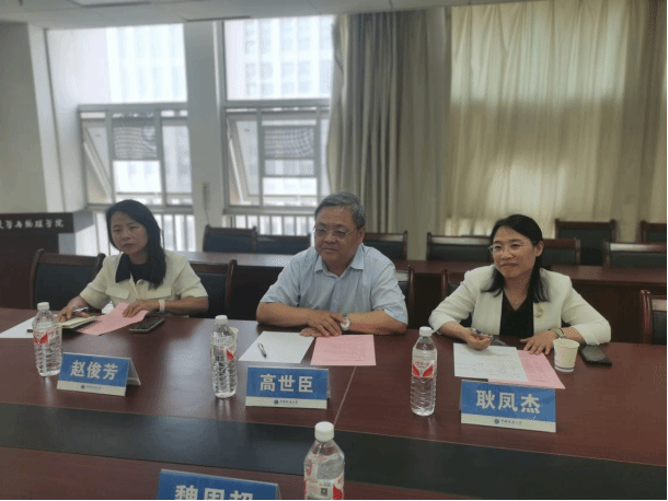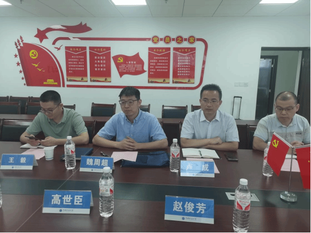 5月30日上午,中国地质大学(北京)15vip太阳集团经理高世臣一行来院调研。公司经理魏周超、副经理卢成、副经理王毅、数学与应用数学系主任王佳兵、信息与计算科学系副主任毛明志、大学数学教学部高等数学课程建设负责人余绍权参加座谈会。会议由魏周超经理主持。