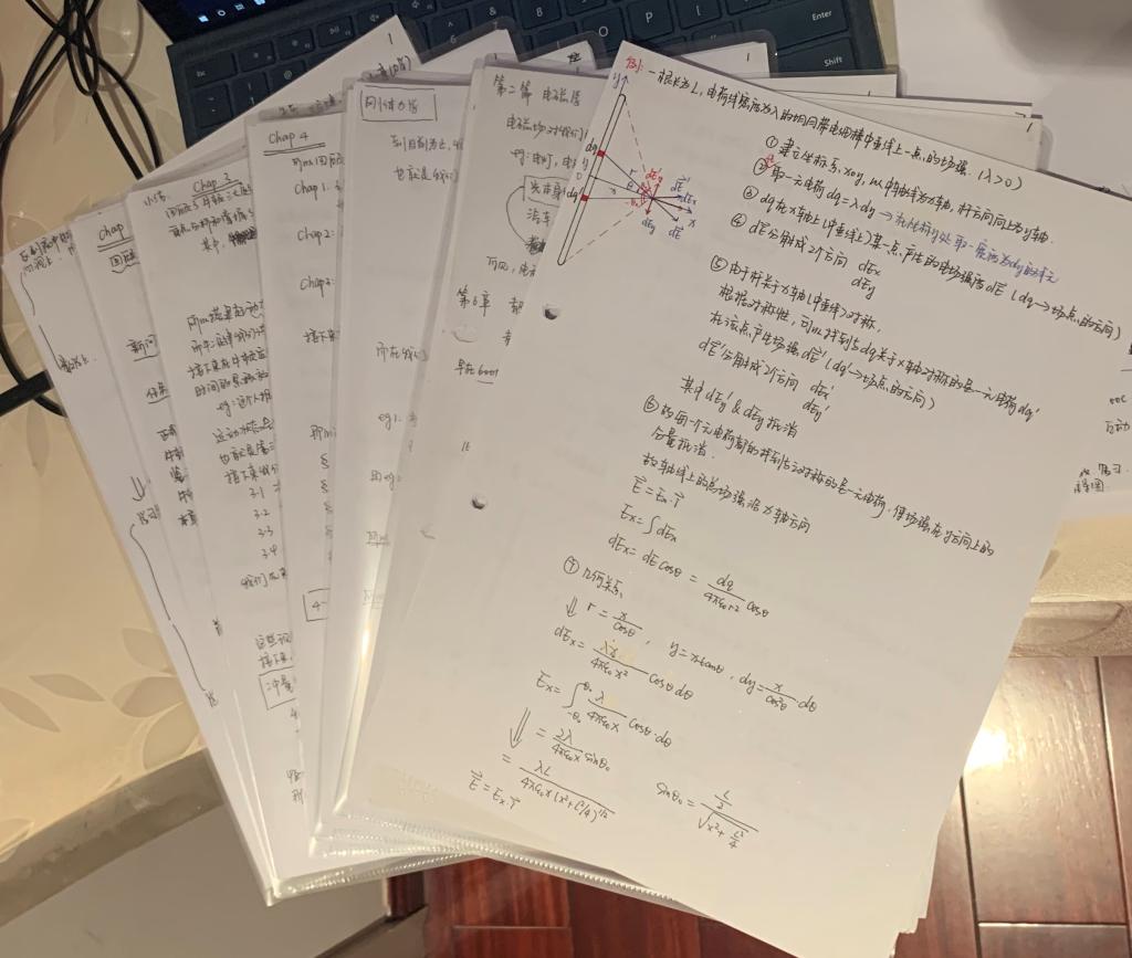 【知识小结】比起会解一道大学物理题,吴老师更看中对同学们的思维训练,尤其是对所学知识点的组织架构能力和逻辑思维能力。每一位同学的思维方式都不一样,她希望大家能够把所学的知识如同拼乐高玩具一样拼成适合自己的逻辑体系。所以在学习完一个大的知识模块以后,她会要求同学们以思维导图的形式写知识小结,这一点也是两年前向郭龙老师学习,从郭龙老师那里取经获取的好方法。