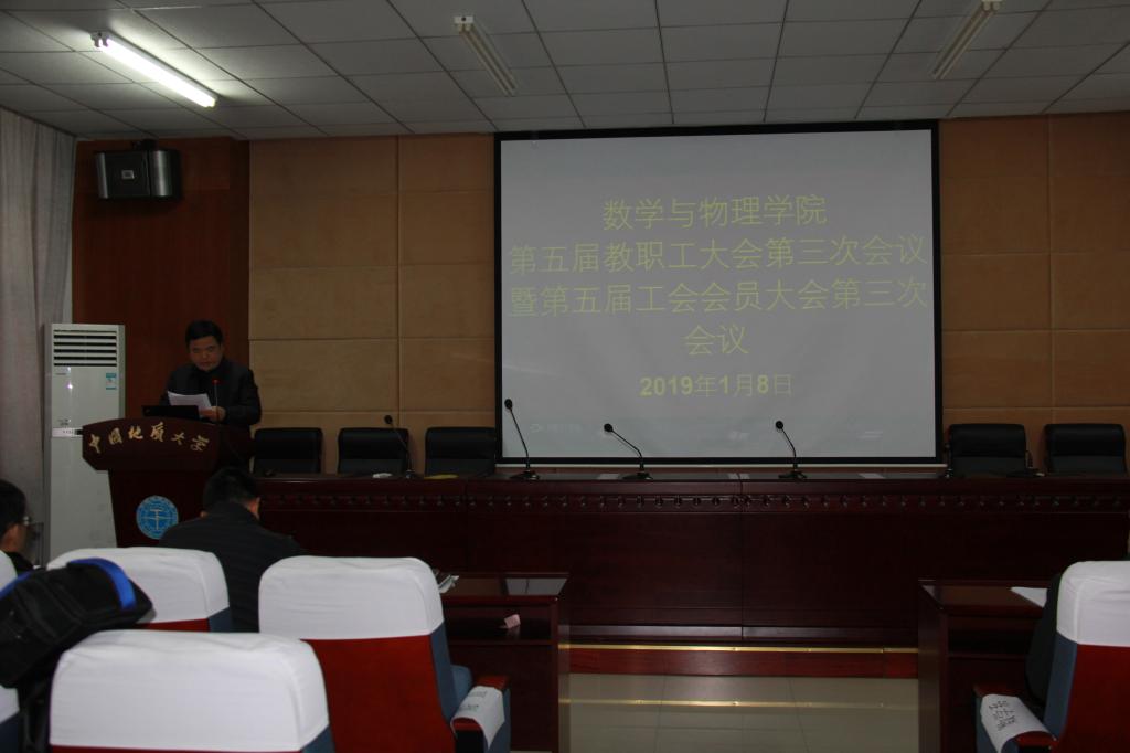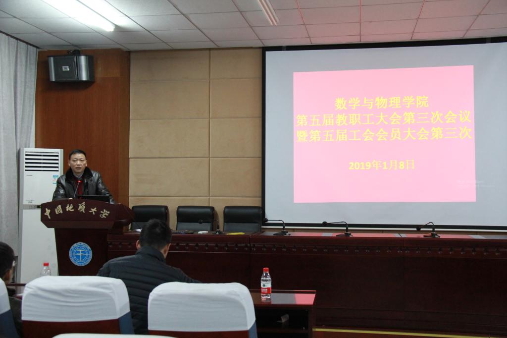 2019年1月8日下午,15vip太阳集团第五届教职工大会第三次会议暨工会会员大会第三次会议在学海楼109会议室隆重召开。公司党委副书记王林清、校工会常务副主席喻芒清应邀出席大会,公司党政领导及全体教职工参加会议。大会分两阶段进行。