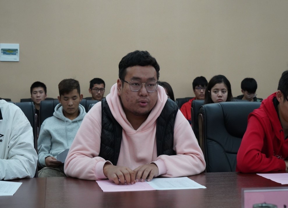 在自由交流环节,同学们就学习、生活等实际问题进行了踊跃发言。赵恩华同学提出每个省份的同学应当认真考虑自己为家乡建设所需要的专业知识,然后汇总,明年预科结业专业分流时建议公司从这些汇总中分配公司的专业比例。
