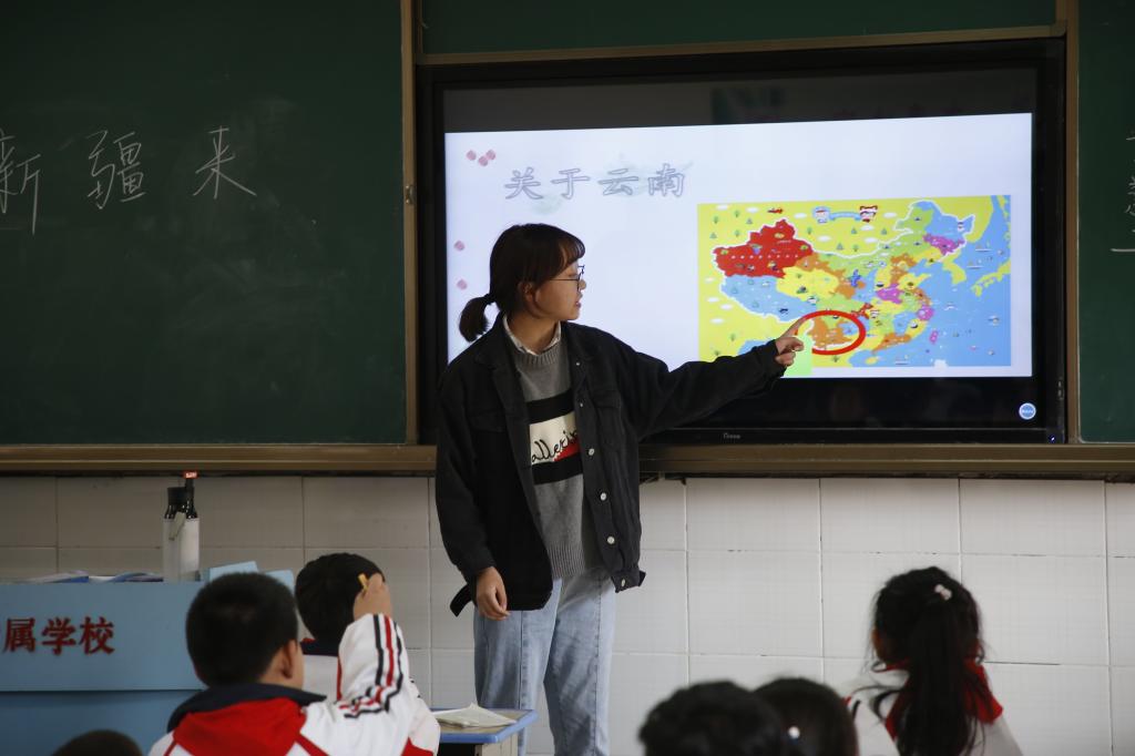 彝族员工普元斌说:今天去地大附校支教可谓是收获满满啊,我感受到了孩子最纯真的笑容,每个人的脸上都有着属于孩童时期的那种天真无邪,虽然和我们素不相识,但是小朋友们还是能和我们愉快的交流,我们一进教室就围拢过来,都很活泼的问我们来干什么啊,从哪里来啊等等。苏轼有句诗“谁道人生无再少”今天我就在和他们的相处好像中回到了自己的小时候,无忧无虑,每天开开心心的,能有这次宝贵的经历,我觉得很幸运。