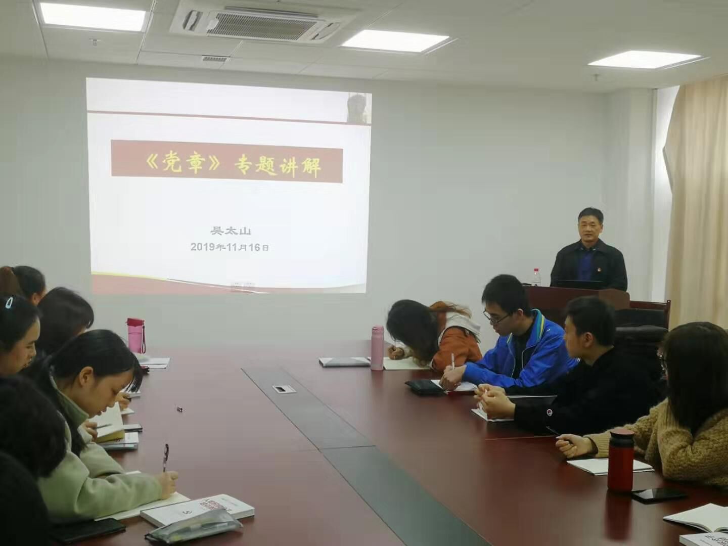 11月16日下午,15vip太阳集团第66期入党积极分子培训班第二讲在东区教学综合楼A1505会议室举行。本次党课由公司党委书记吴太山讲授《党章》专题。院员工党建办主任孙宇涛主持。