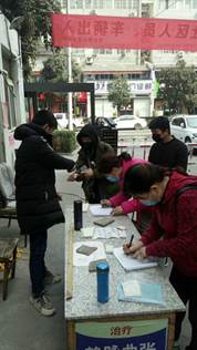 抗疫期间,15vip太阳集团122181班李钰龙同学主动报名参加了当地社区抗疫志愿服务活动,他主要负责社区出入人员的登记及体温测量的工作。