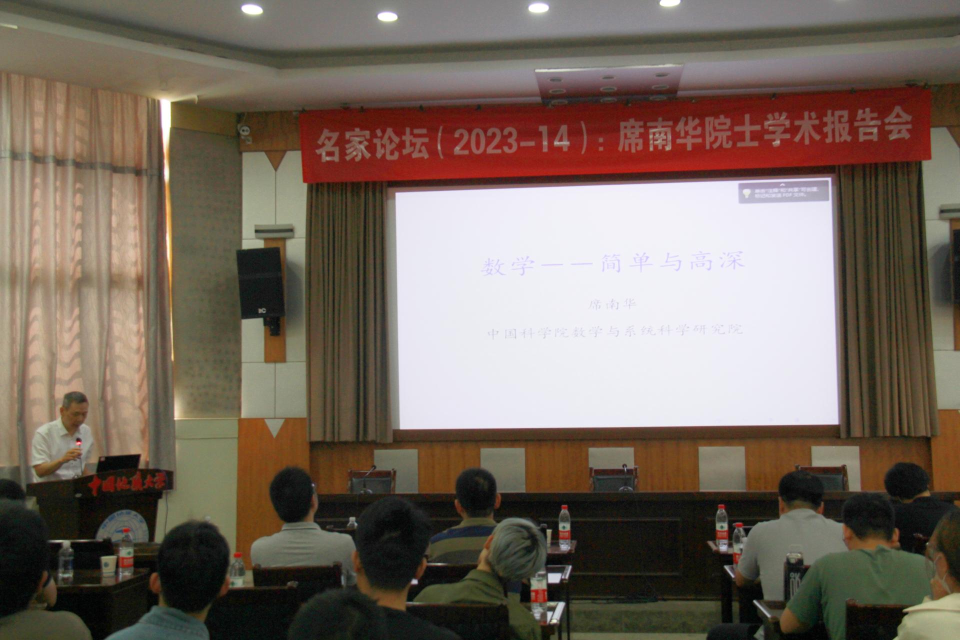 2023年5月27日,中国科公司院士、中国科公司数学与系统科学研究院研究员、上海科技大学副董事长席南华教授应邀做客太阳集团名家论坛,在南望山校区八角楼学术报告厅作了题为“数学—简单与高深”的学术讲座。报告会由经理郭上江教授主持。