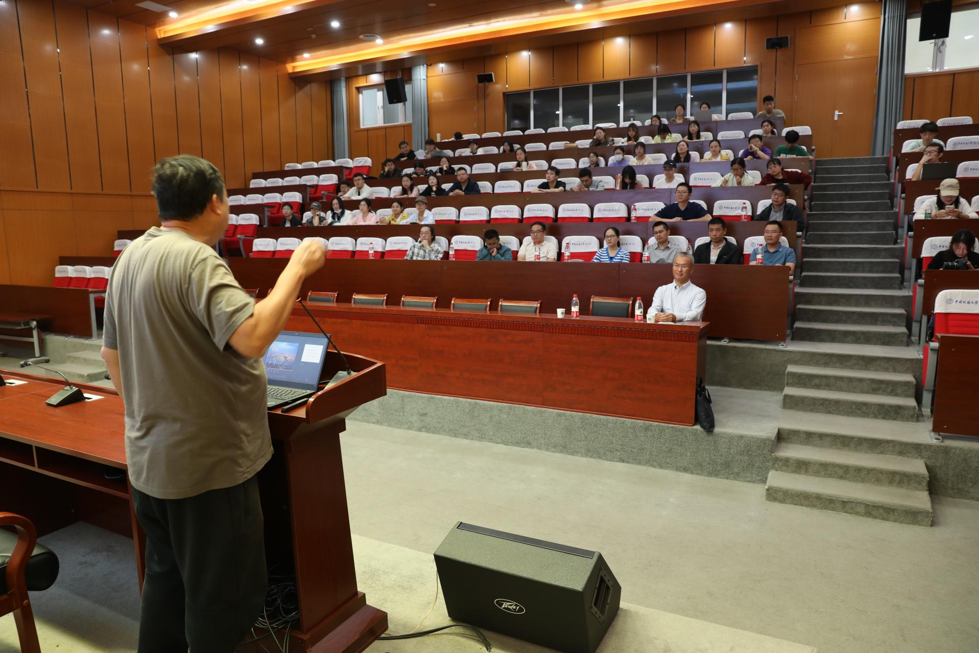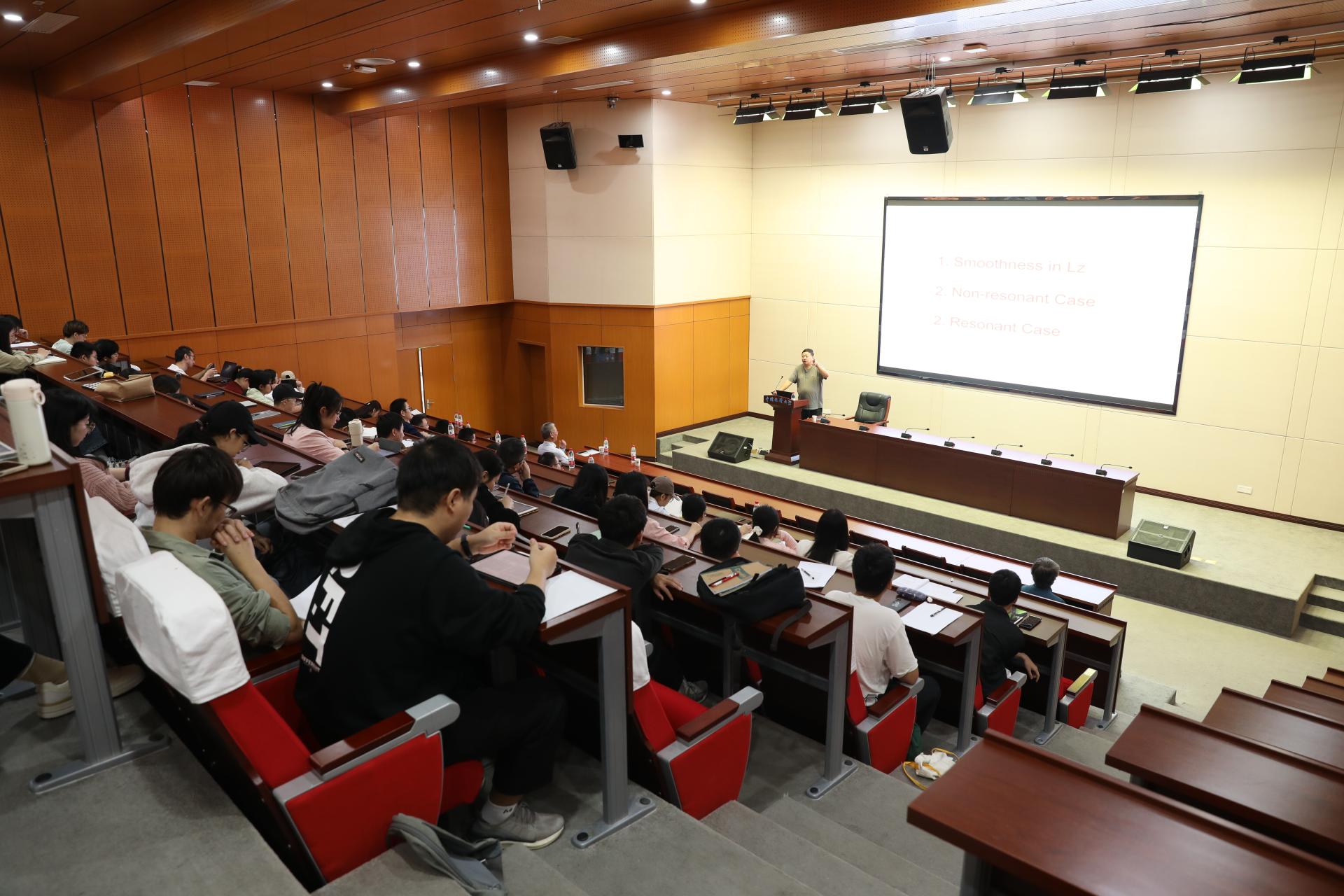 张伟年教授围绕线性化理论中的光滑性与共振性做了一场精彩的学术讲座。张教授从现实生活当中的例子入手,生动的阐述了线性化理论的概念,通过具体例子把动力系统中非常主流和深奥的数学概念,形象的描述出来,使大家能够更好地理解报告中提及的共振情形下映射的可光滑线性化理论。张教授的讲座内容丰富,旁征博引,将本身抽象难懂的数学理论方法描述得生动形象,通俗易懂,使得在场老师和员工能轻松愉快地接受和学习到数学前沿理论。讲座结束后,张教授与老师和同学进行了细致地交流和讨论,耐心的回答了在场师生的所有问题,并给在场师生传授了如何选择研究课题以及强调了选择好课题的重要性!